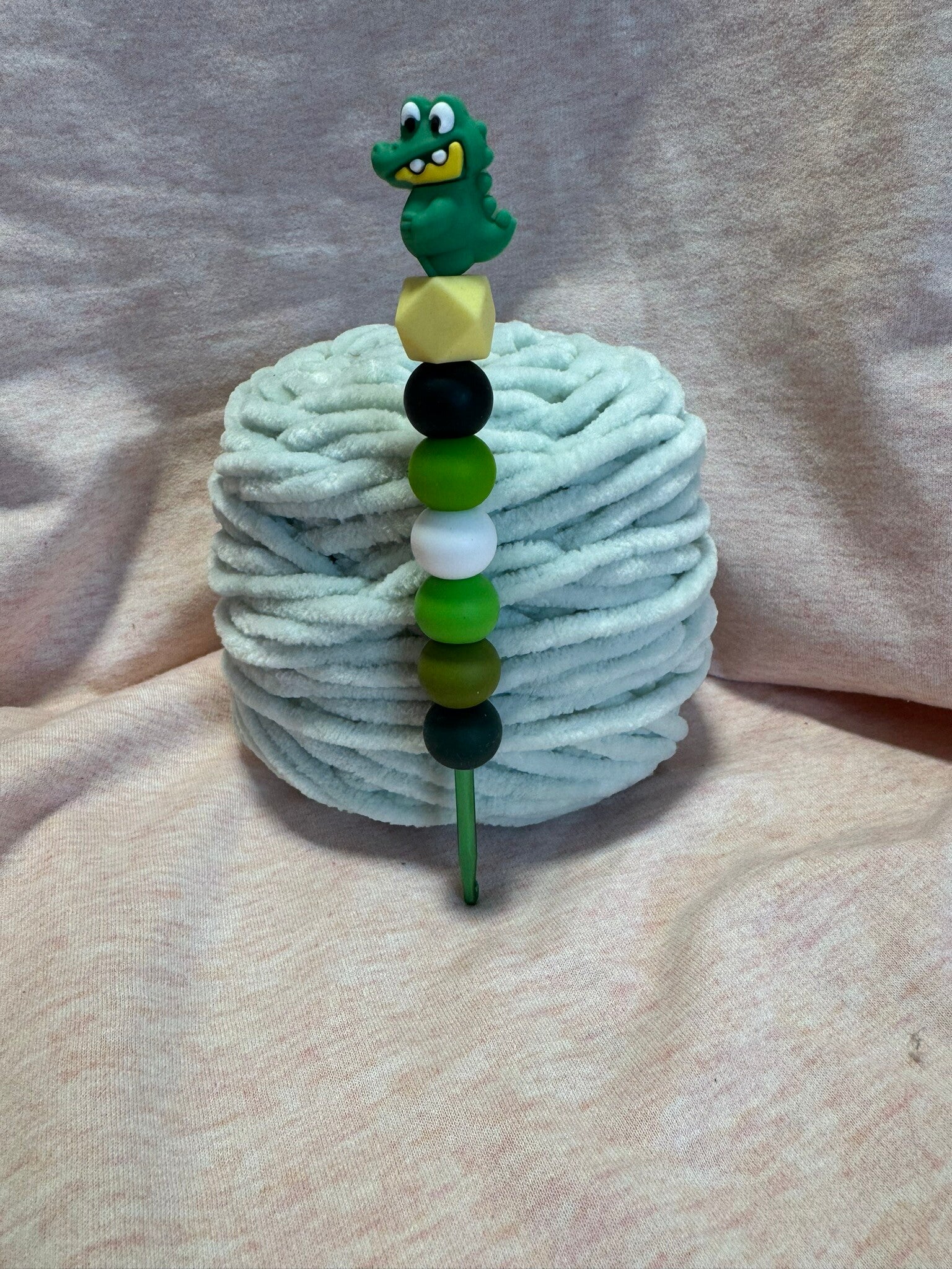 Mit dieser liebevoll gestalteten Silikonperlen-Häkelnadel wird jedes Häkelprojekt zu einem kleinen Wohlfühlmoment.