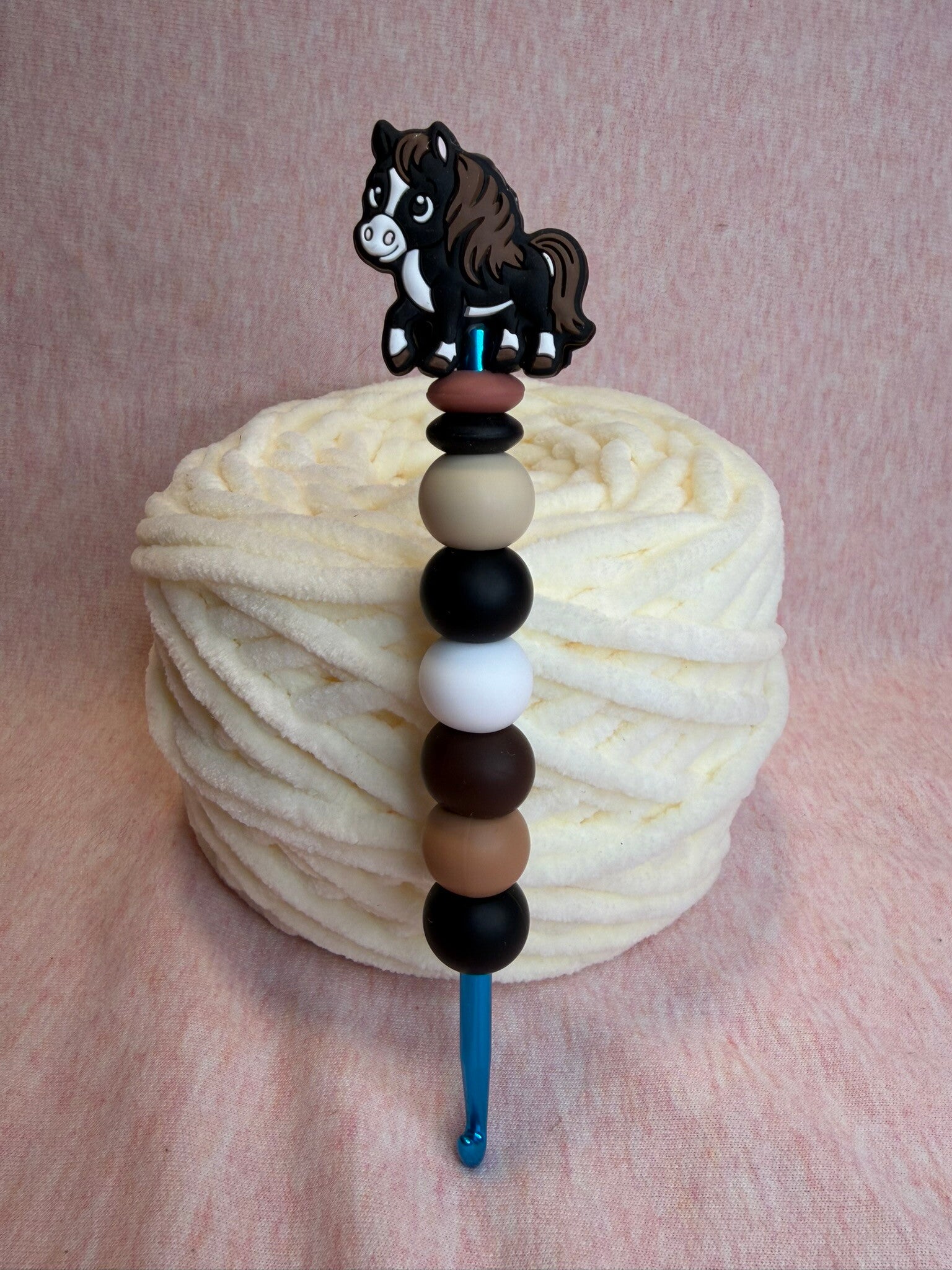 Mit dieser liebevoll gestalteten Silikonperlen-Häkelnadel wird jedes Häkelprojekt zu einem kleinen Wohlfühlmoment.