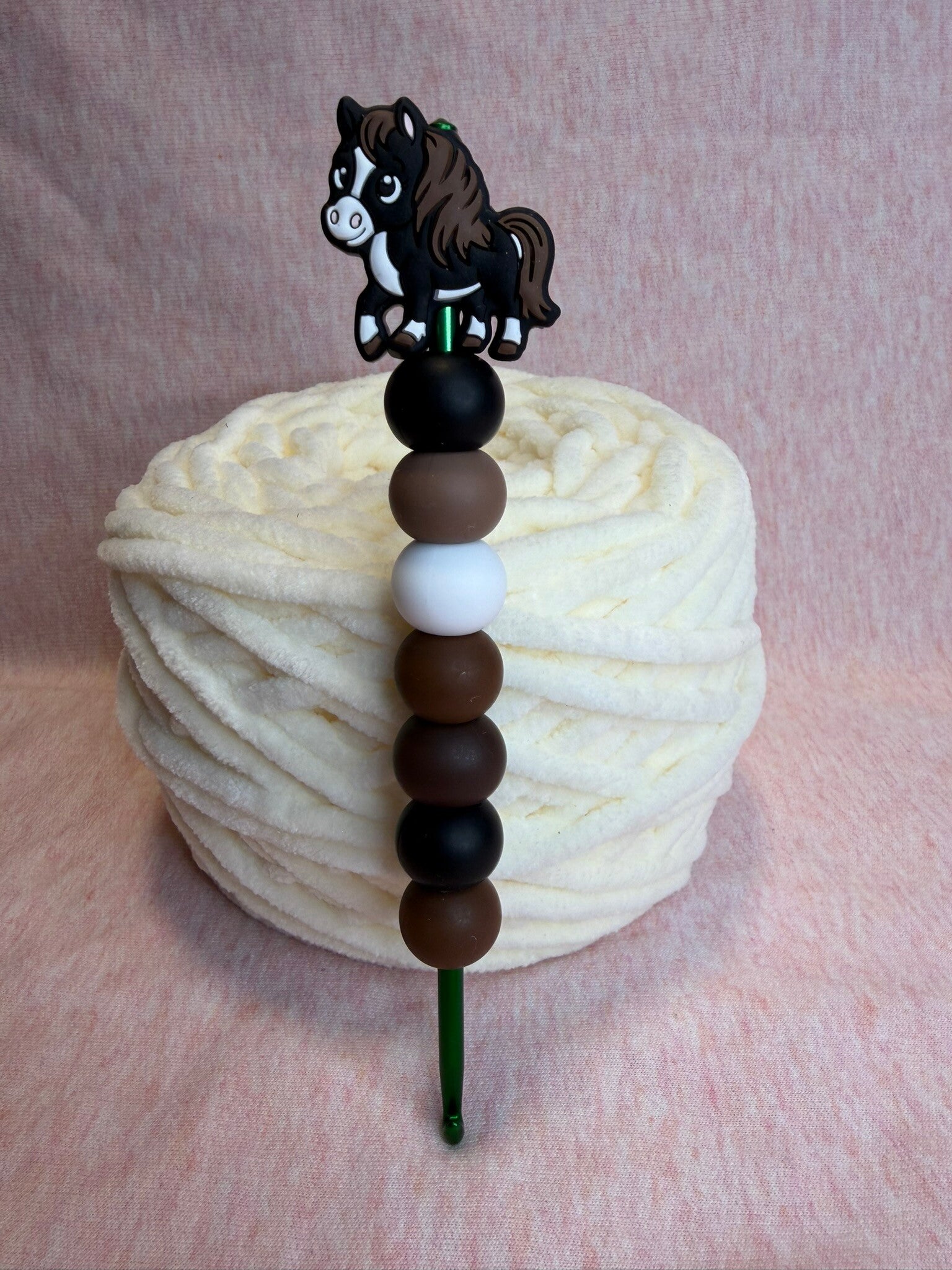 Mit dieser liebevoll gestalteten Silikonperlen-Häkelnadel wird jedes Häkelprojekt zu einem kleinen Wohlfühlmoment.