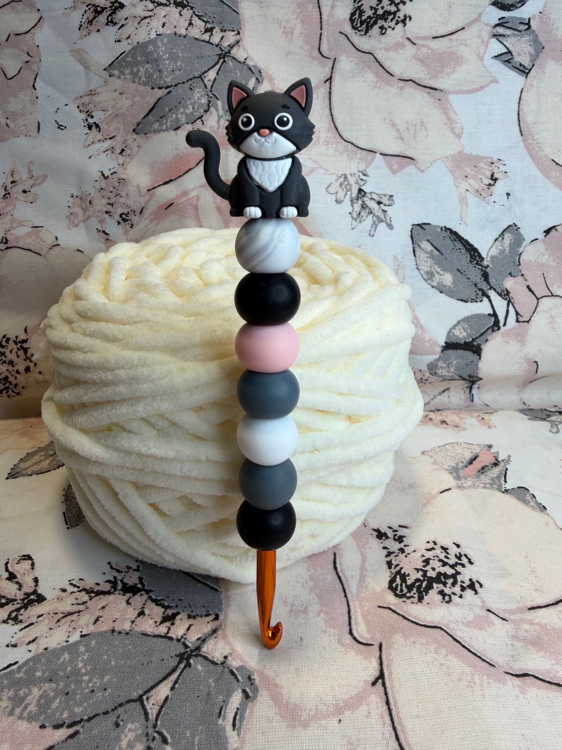 Mit dieser liebevoll gestalteten Silikonperlen-Häkelnadel wird jedes Häkelprojekt zu einem kleinen Wohlfühlmoment.