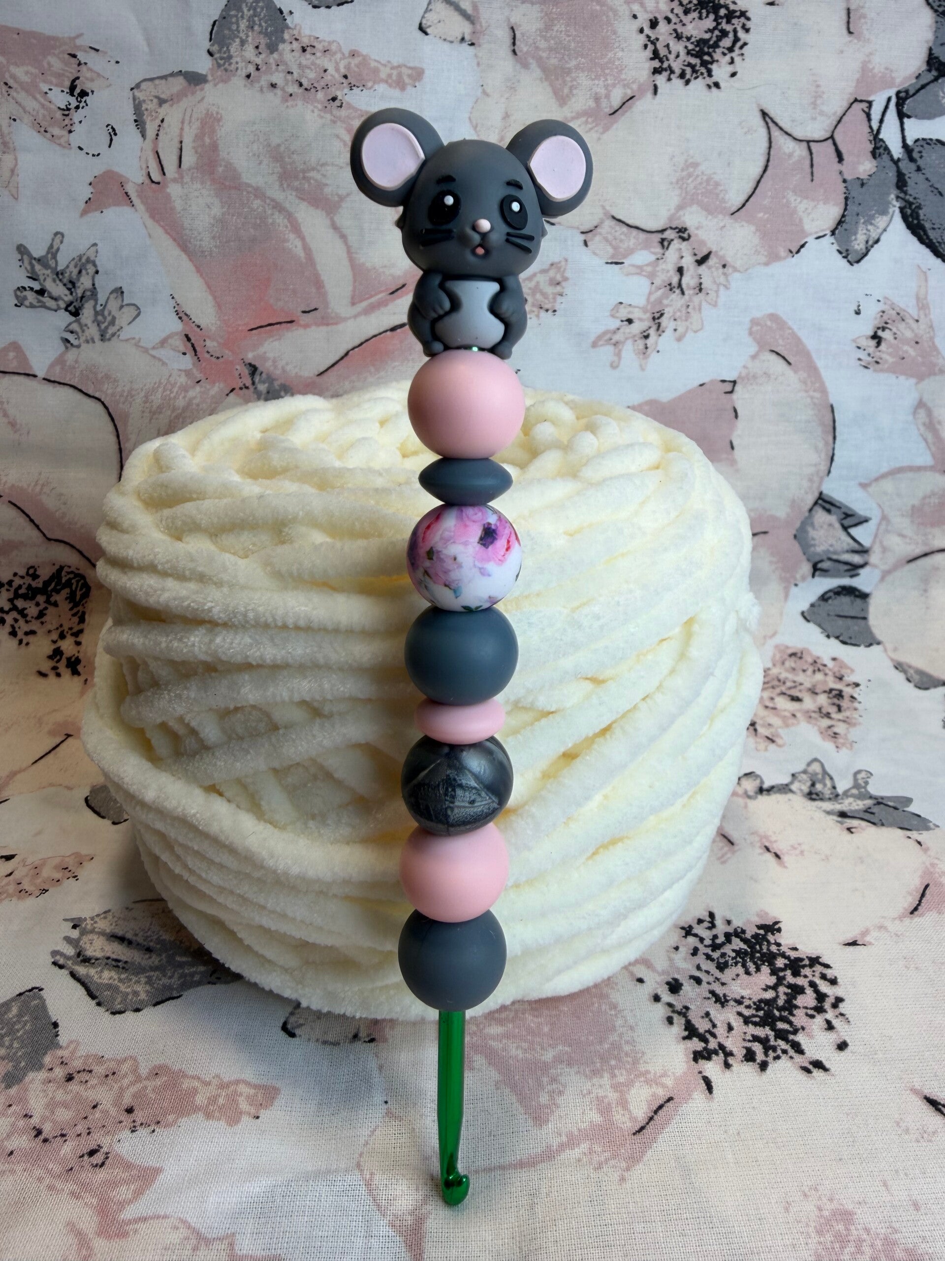 Mit dieser liebevoll gestalteten Silikonperlen-Häkelnadel wird jedes Häkelprojekt zu einem kleinen Wohlfühlmoment.