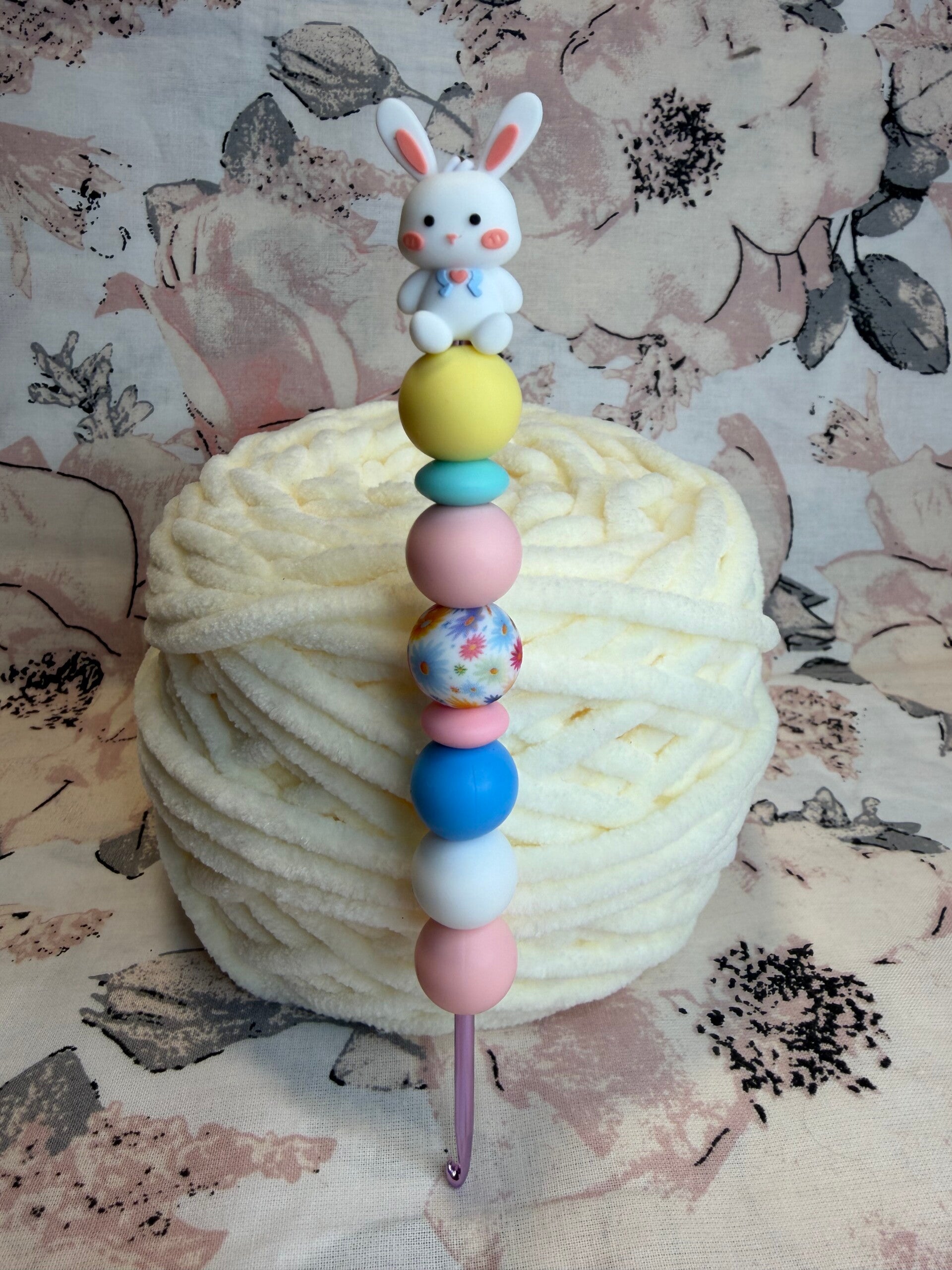 Mit dieser liebevoll gestalteten Silikonperlen-Häkelnadel wird jedes Häkelprojekt zu einem kleinen Wohlfühlmoment.