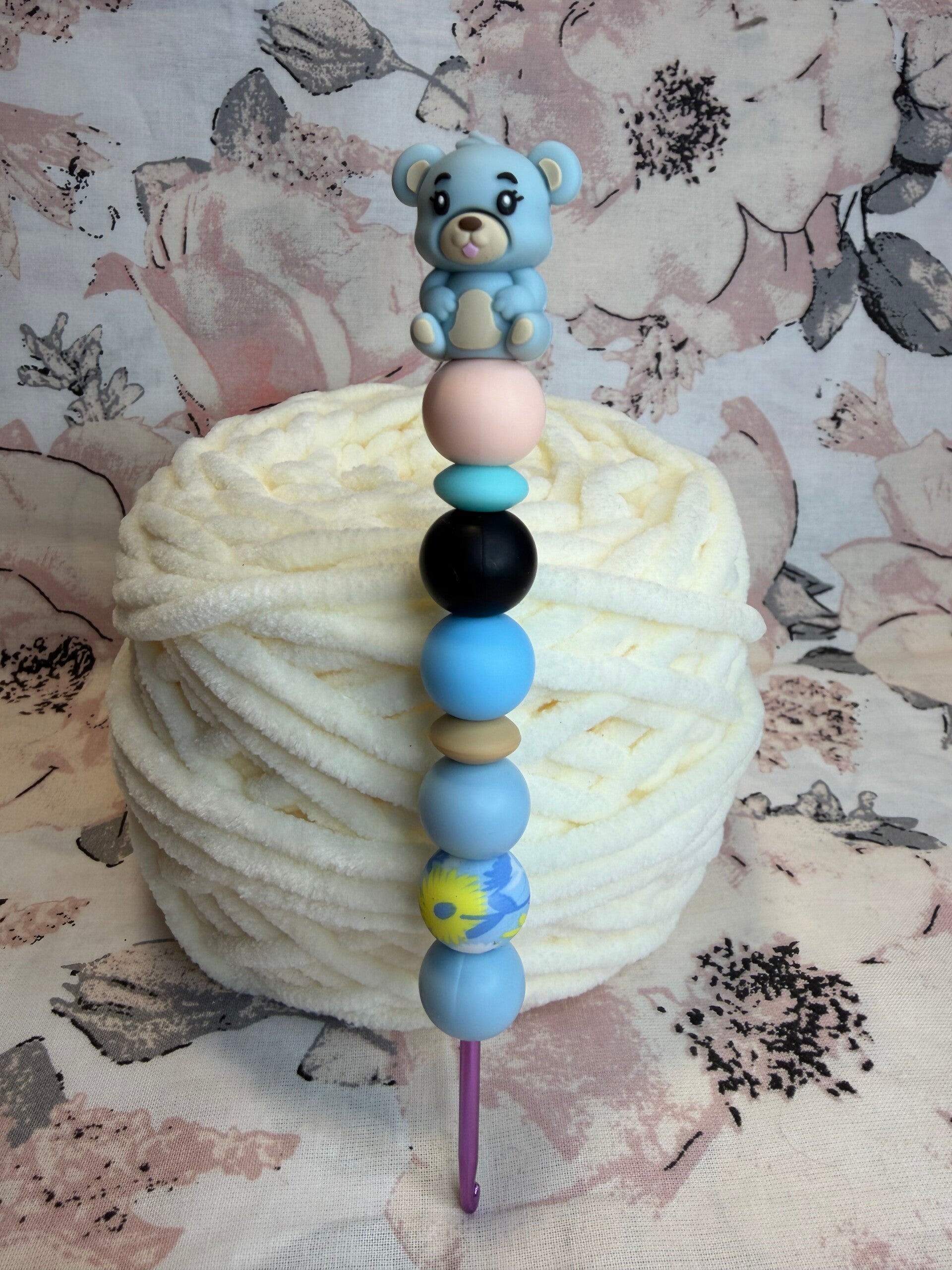 Mit dieser liebevoll gestalteten Silikonperlen-Häkelnadel wird jedes Häkelprojekt zu einem kleinen Wohlfühlmoment.